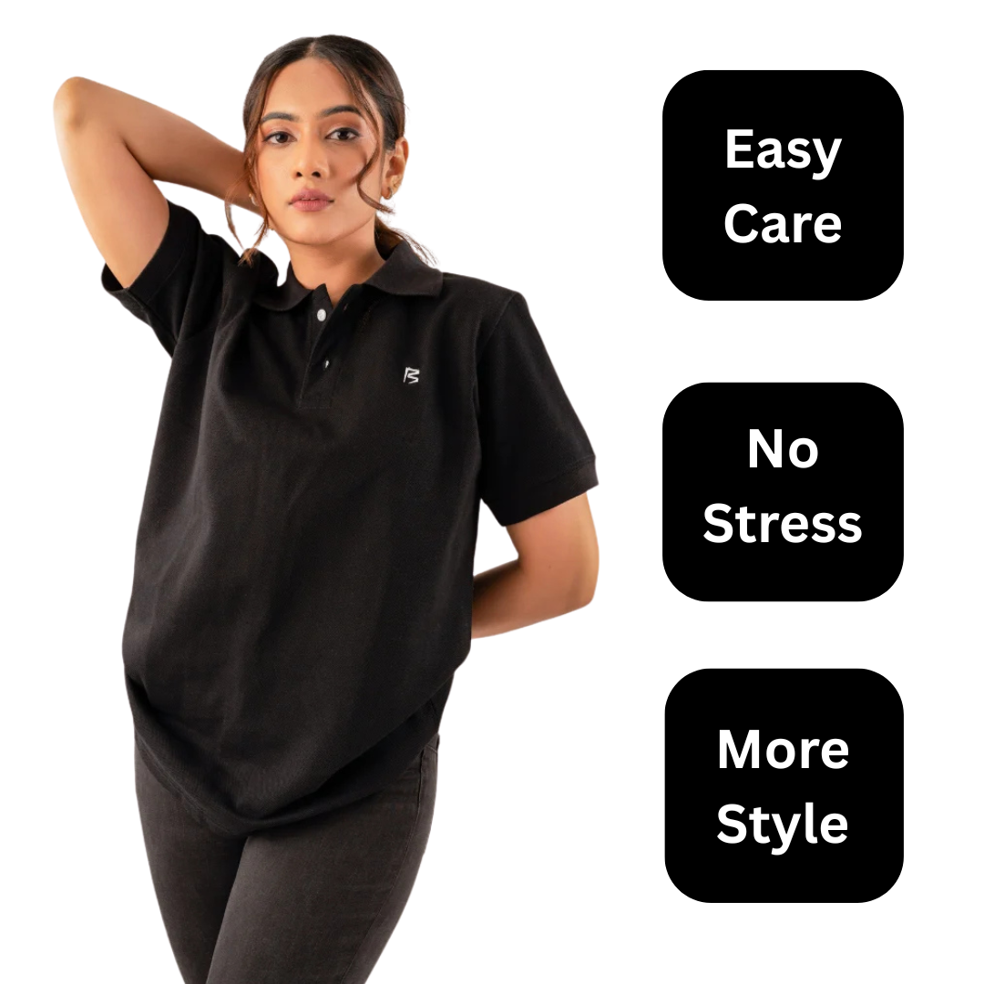 Slip into this black polo, and you’ll feel the effortless confidence that comes with timeless simplicity. The rich, versatile black color pairs seamlessly with anything—denim, chinos, shorts, or even layered under a blazer. It adapts to your lifestyle, whether you’re heading to work, catching up with friends, or enjoying a relaxed evening out.