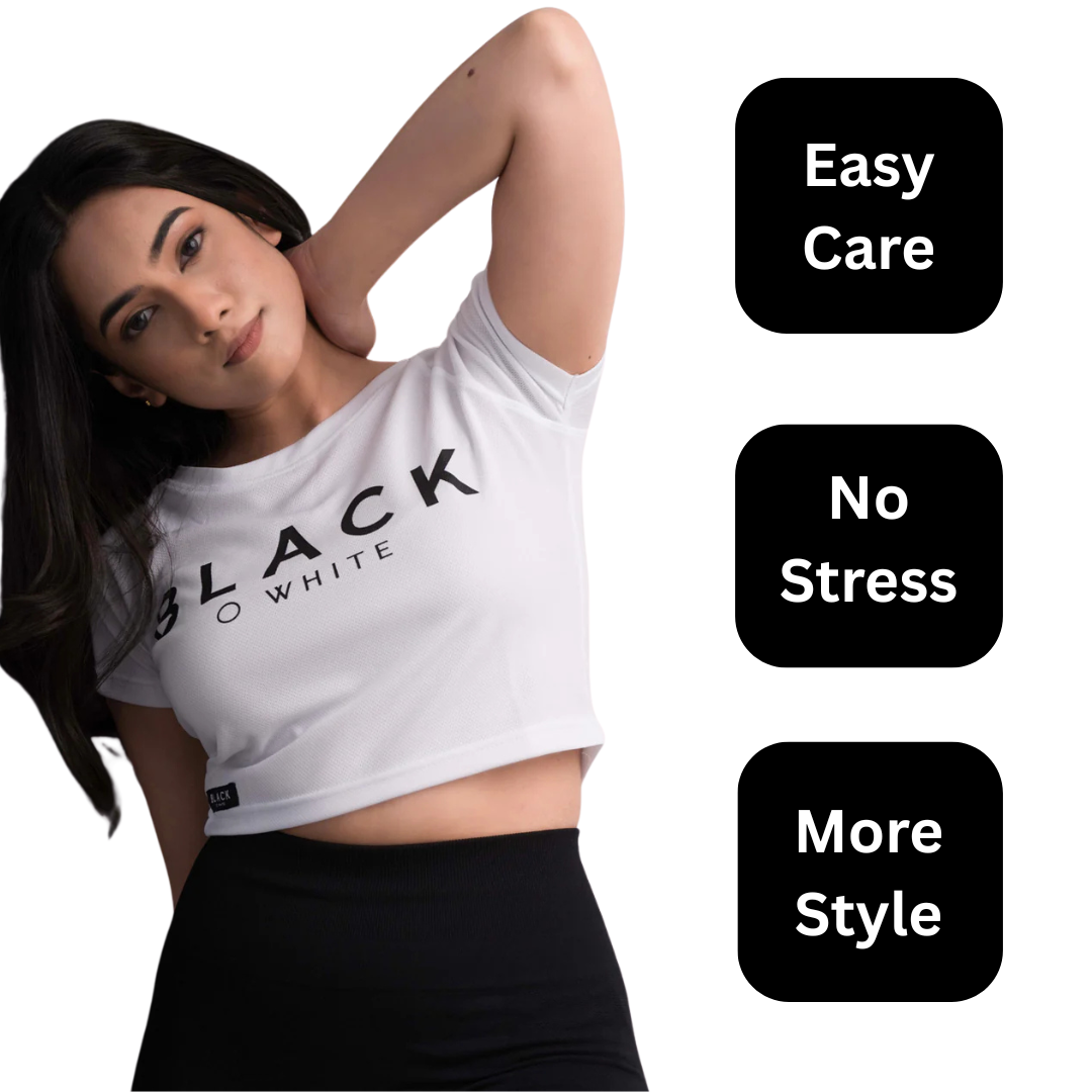 Unlike ordinary crop-tops, the Black O White edition offers a minimalistic logo for a premium touch, a relaxed fit for comfort, and export-quality finishing that ensures durability and timeless style.